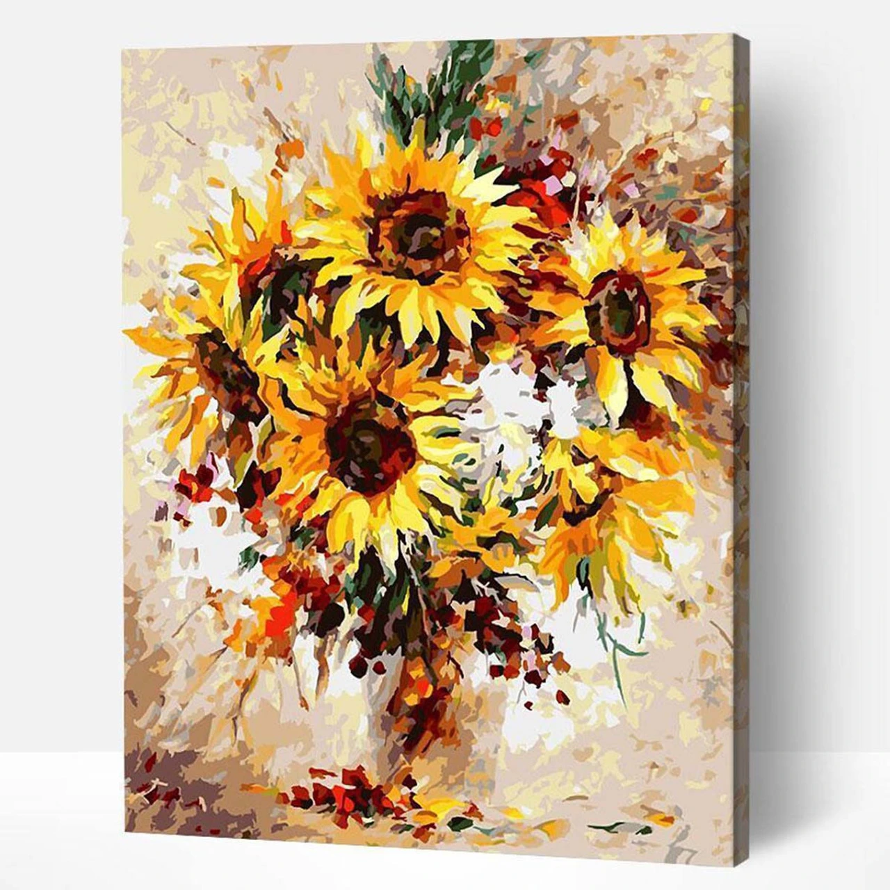 Embrace your inner artist as you re-create this stunning autumn bouquet. Paint-by-number kit includes pre-printed canvas, acrylic paints, varnish, paintbrush, and hanging kit with frame hangers, screws, level, and reference sheet. 16 x 20″ (40 x 50cm).