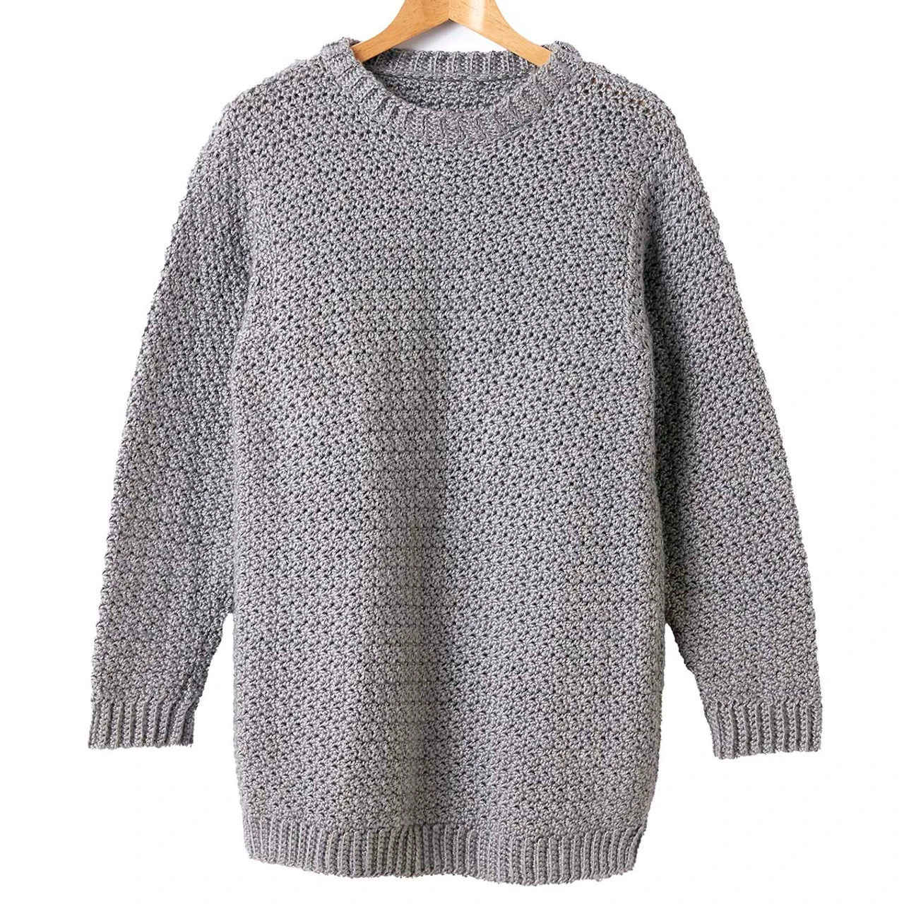 A subtle waffle texture and heathered appearance make this pullover a wardrobe classic. This easy crochet pullover is a great introduction to making garments. With a range of sizes and a unisex style stitched in the wondrously soft Caron Simply Soft yarn, this project is a wonderful choice for all stitchers. This pullover kit includes the yarn and easy crochet instructions. Available in sizes Extra Small/Small through 4/5XL, this design requires a US size H-8 (5mm) hook to complete (not included). Imported.
