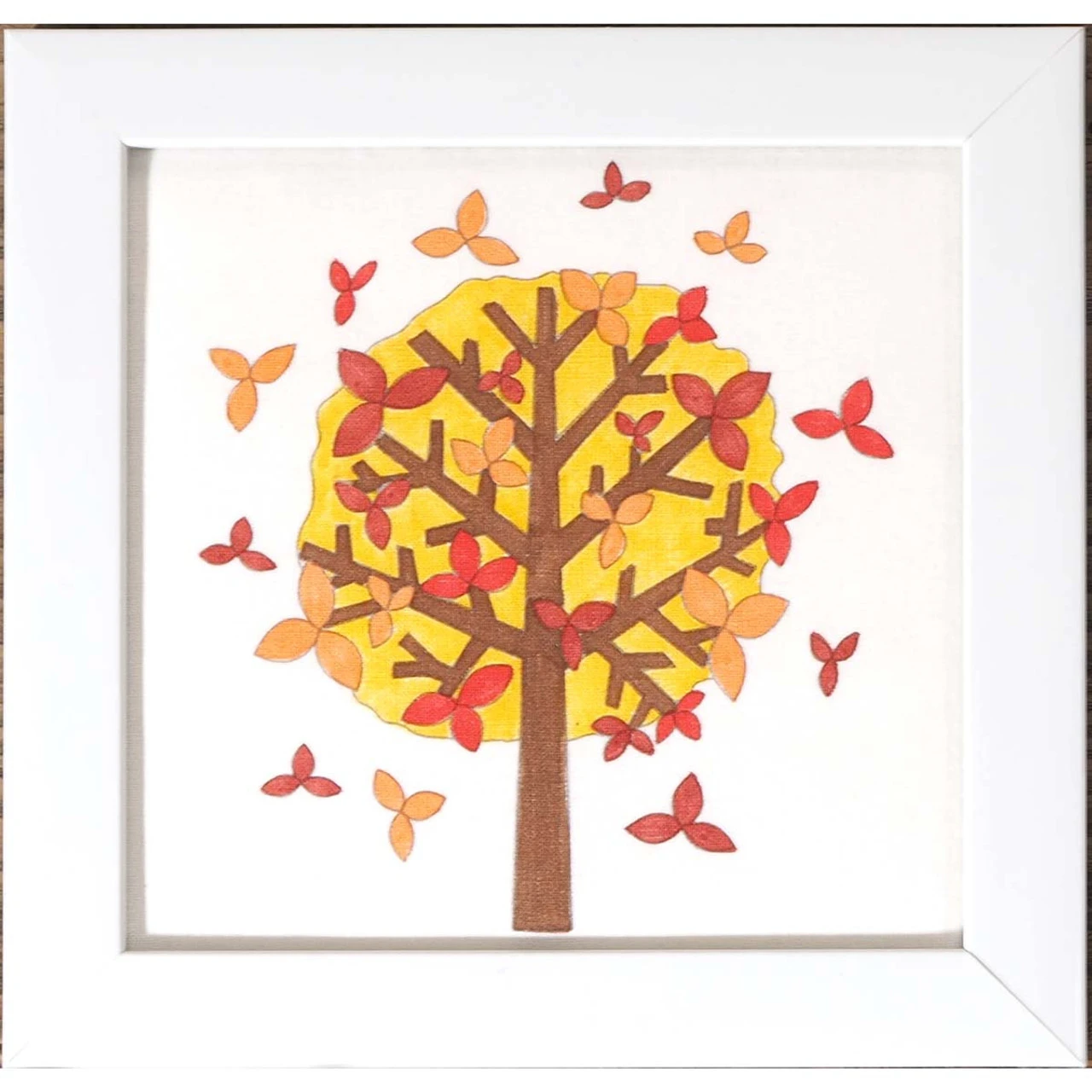 Add vibrant fall foliage to this tree with fabric paints or markers! Design is pre-stamped for painting on ivory fabric. Includes white frame. 6 x 6″. Imported from Europe.
