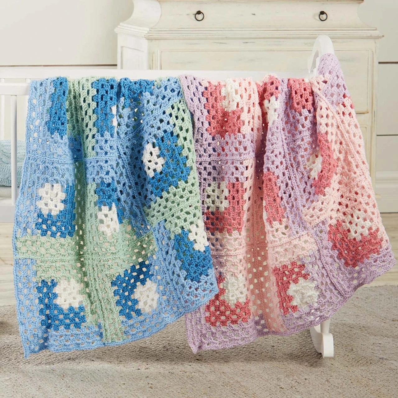 Colorblocked squares create a fun geometric pattern in this eye-catching baby blanket. Kit includes Herrschners Baby Yarn Sparkle and intermediate crochet instructions. 37 Ć 54″ (94 x 137cm). Imported.