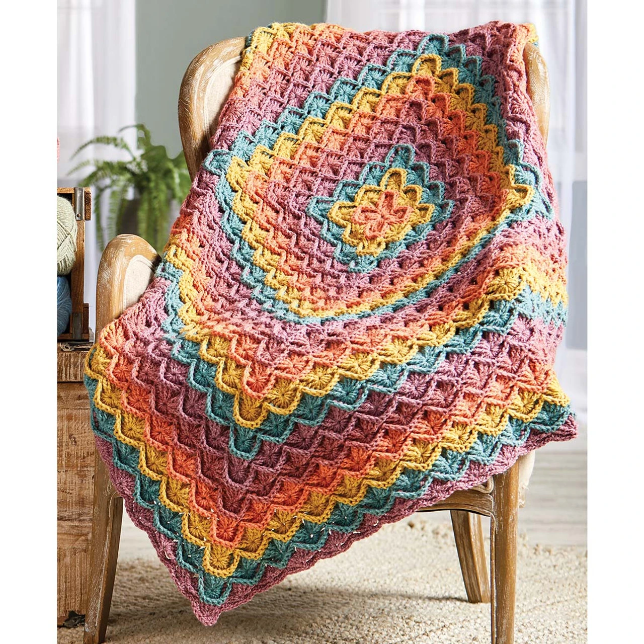 This spectacular layered afghan is a mesmerizing combination of color and texture. Worked from the center out in Herrschners Worsted 8 Heathers yarn, this square design creates a rainbow of raised scallops with a scale-like appearance that is a true showstopper. Along with the yarn and intermediate crochet instructions, this afghan kit comes complete with a clear vinyl storage bag, yarn needle, and a label for personalization. This 50 x 50″ (127 x 127cm) design requires a US size H-8 (5mm) hook to complete (not included). Imported.
