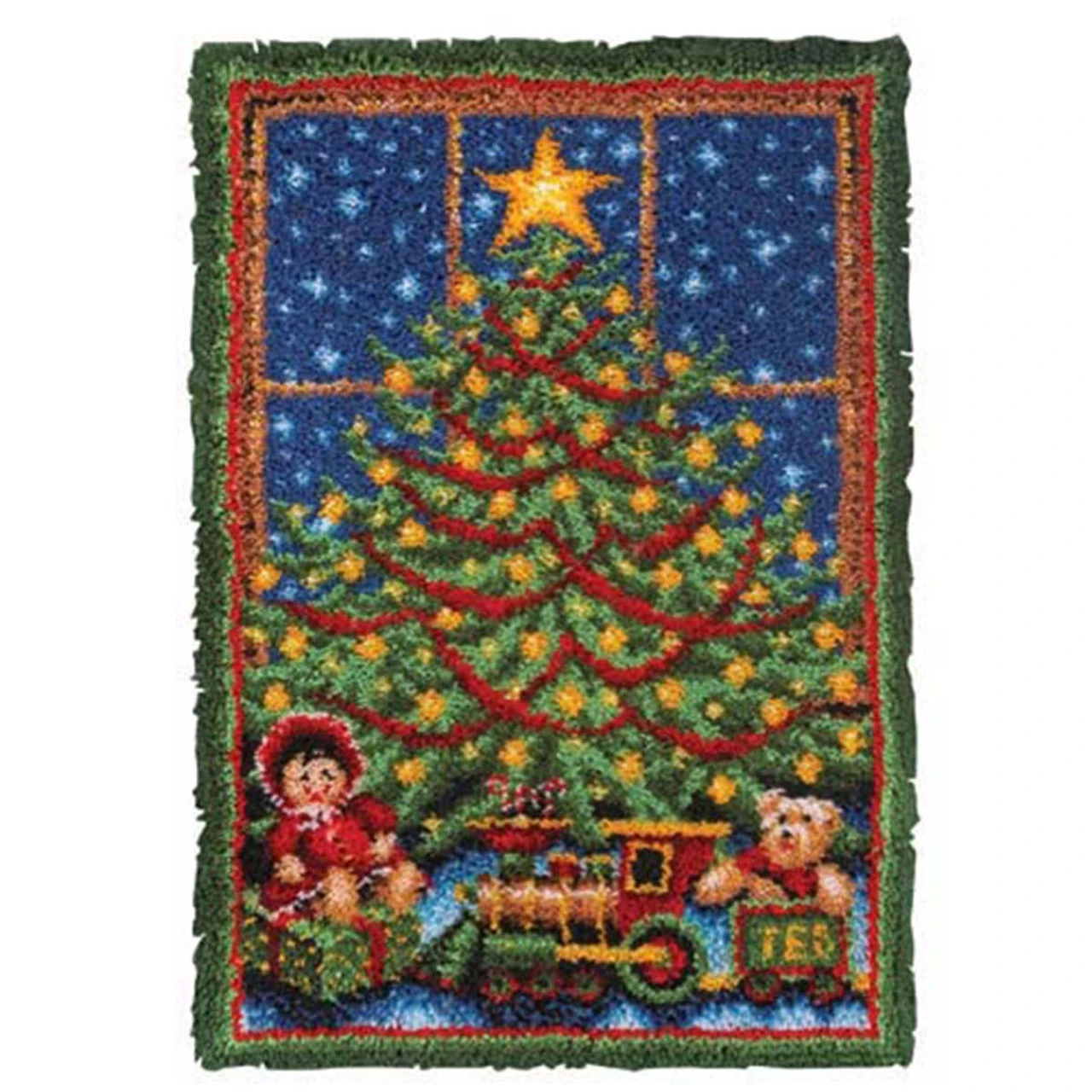 Extraordinary Christmas tree captures the magic of the holiday season. Crafters of all ages and skill levels enjoy the variety latch hook provides. Finished projects can be made into pillows, wall hangings, rugs, and more. Kit includes 3.75-mesh gridded canvas, lofty pre-cut 100% acrylic yarn, clear vinyl storage bag, easy-to-follow chart, and instructions. Latch hook tool not included. The higher-gauge canvas of this project allows for a high level of detail in the finished design. 27 x 40″ (69 x 102cm). Imported.