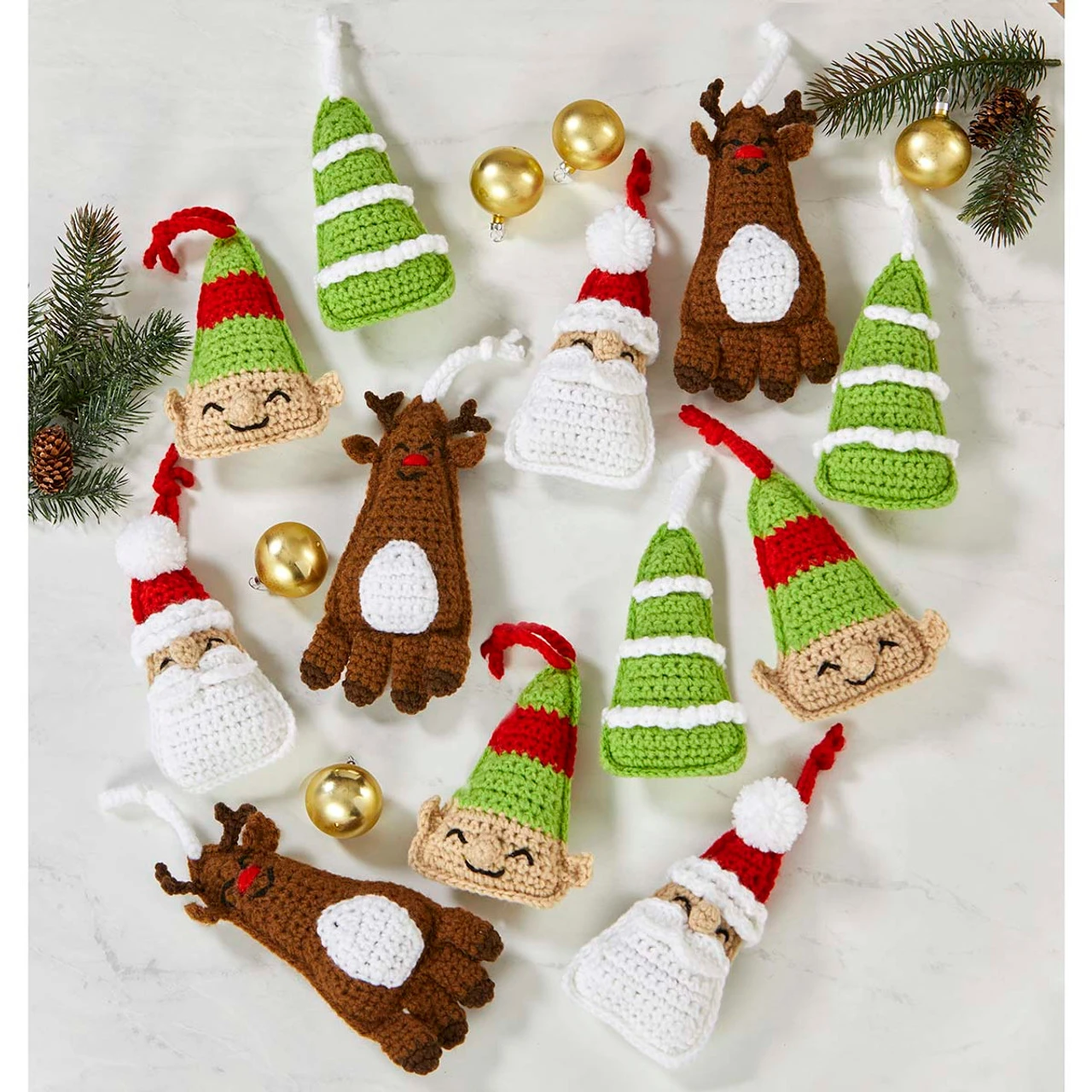 Adorable quick-to-stitch ornaments are perfect for trimming the tree or decorating Christmas presents. Featuring iconic Christmas characters and symbols stitched in Herrschners Worsted 3 yarn, this collection of small Santas, elves, reindeer, and Christmas trees make great take-a-long projects. Along with the yarn and intermediate crochet instructions, this crochet ornament kit comes with a clear zippered storage bag. The set of 12 ornaments measure up to 8″ (20.3cm) and require a US size G-6 (4mm) hook to complete (not included). Imported.