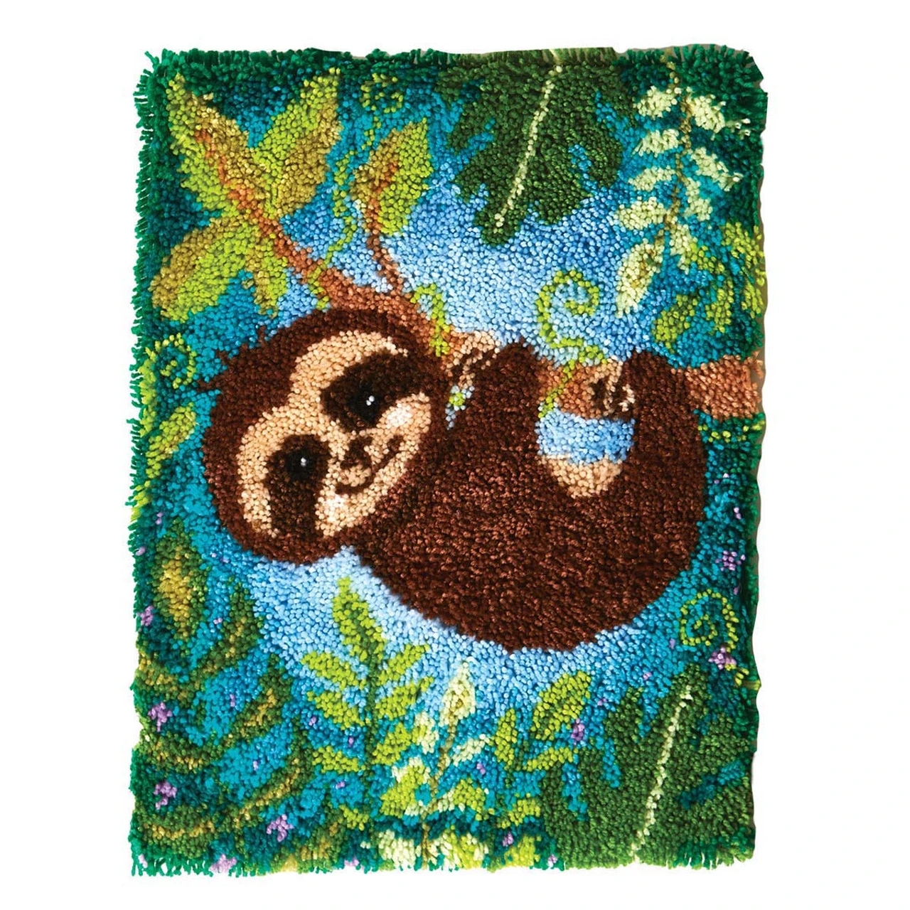 Kids and adults alike love having this adorable sloth hang around. Crafters of all ages and skill levels enjoy the variety latch hook provides. Finished projects can be made into pillows, wall hangings, rugs, and more. Kit includes 3.75-mesh gridded canvas, lofty pre-cut 100% acrylic yarn, easy-to-follow chart, and instructions. Latch hook tool not included. The higher-gauge canvas of this project allows for a high level of detail in the finished design. 20 x 27″ “(51 x 69cm). Imported.