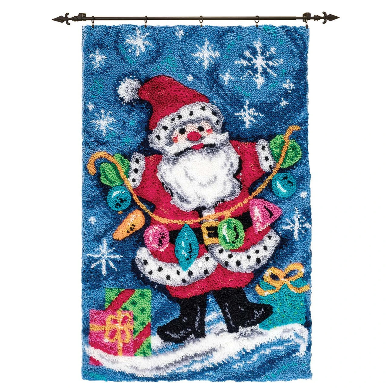 Brighten your holidays with a cheerful Santa. Crafters of all ages and skill levels enjoy the variety latch hook provides. Finished projects can be made into pillows, wall hangings, rugs, and more. Kit includes 3.75-mesh gridded canvas, lofty pre-cut 100% acrylic yarn, clear vinyl storage bag, easy-to-follow chart, and instructions. Latch hook tool not included. The higher-gauge canvas of this project allows for a high level of detail in the finished design. 27 x 40″ (69 x 102cm). Imported.