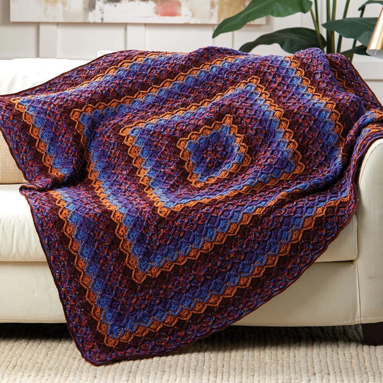 A mesmerizing blend of color and texture makes this afghan a masterpiece. This intermediate crochet afghan is stitched in the round from the center out, pairing multi and solid shades of Herrschners Afghan Yarn to create a stunning showpiece for your home. Along with the yarn and intermediate crochet instructions, this afghan kit comes with a clear zippered storage bag, yarn needle, and a label for personalization. This 54 x 54″ (137 x 137cm) design requires a US size G-6 (4mm) hook to complete (not included). Imported.