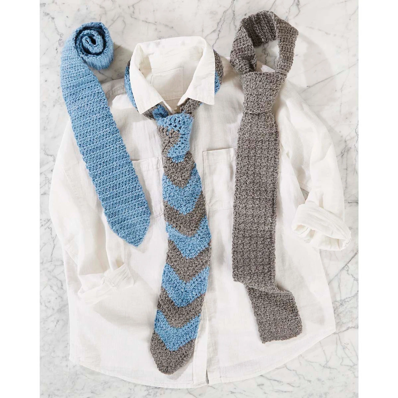 Dress up your look with a handmade necktie! A great gift for Fatherās Day or dadās birthday, this quick and easy crochet kit makes 3 neckties in shades of blue and gray. The set of crochet neckties includes one solid blue tie, one solid gray tie with a waffle-like texture, and one chevron tie with blue and tray stripes. This crochet kit comes with the yarn and easy crochet instructions to make all three ties. The finished ties measure 3½” (8.9cm) at the widest point and 57″ (145cm) long. Requires a US size H-8 (5mm) hook to complete (not included). Imported.
