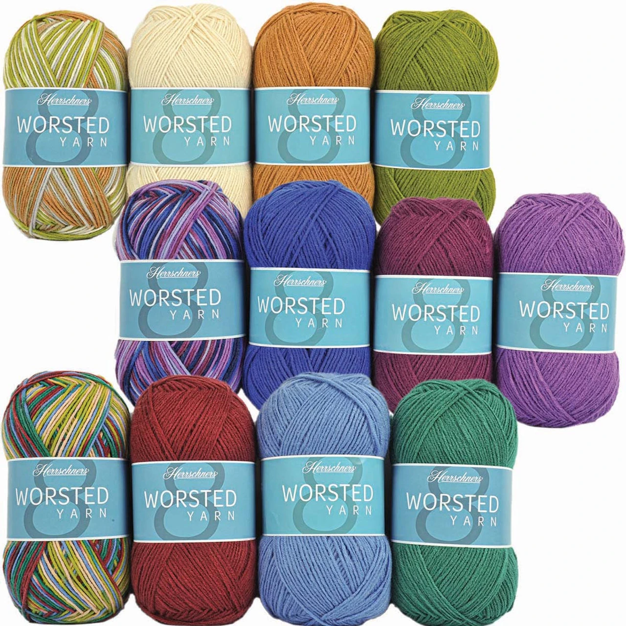 Create perfectly coordinated projects with expertly matched yarn in Herrschners Worsted 8 solids and multis. Each pack includes 4 balls of yarn (1 multi shade and 3 coordinating solids) perfectly matched to create knit and crochet projects. Each ball of this premium quality yarn contains 8 full ounces (489 yards) of worsted weight yarn for both solids and multis. This 100% acrylic yarn is perfect for afghans, sweaters, home décor projects, and more. Contains an easy-pull yarn tab for hassle-free starts to projects. This machine washable yarn is durable and looks great wash after wash. Imported.
