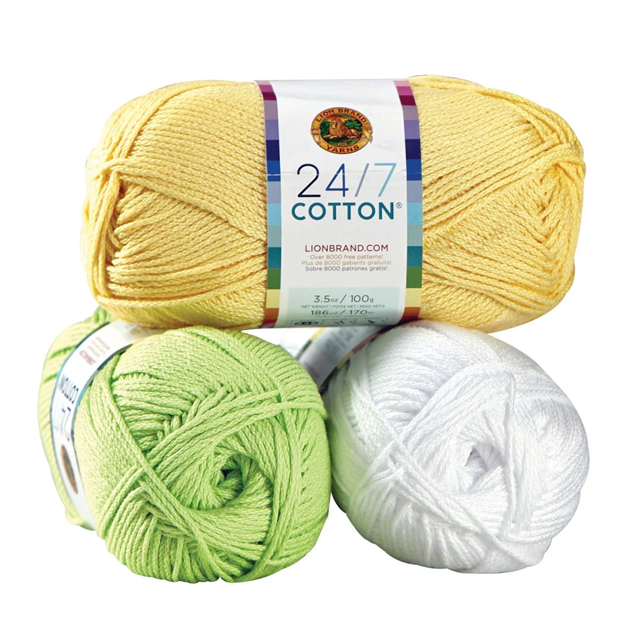Bring some zest to knit and crochet projects with citrusy shades of Lion Brand 24/7 Cotton yarn. Includes three balls of yarn, one in each color shown.