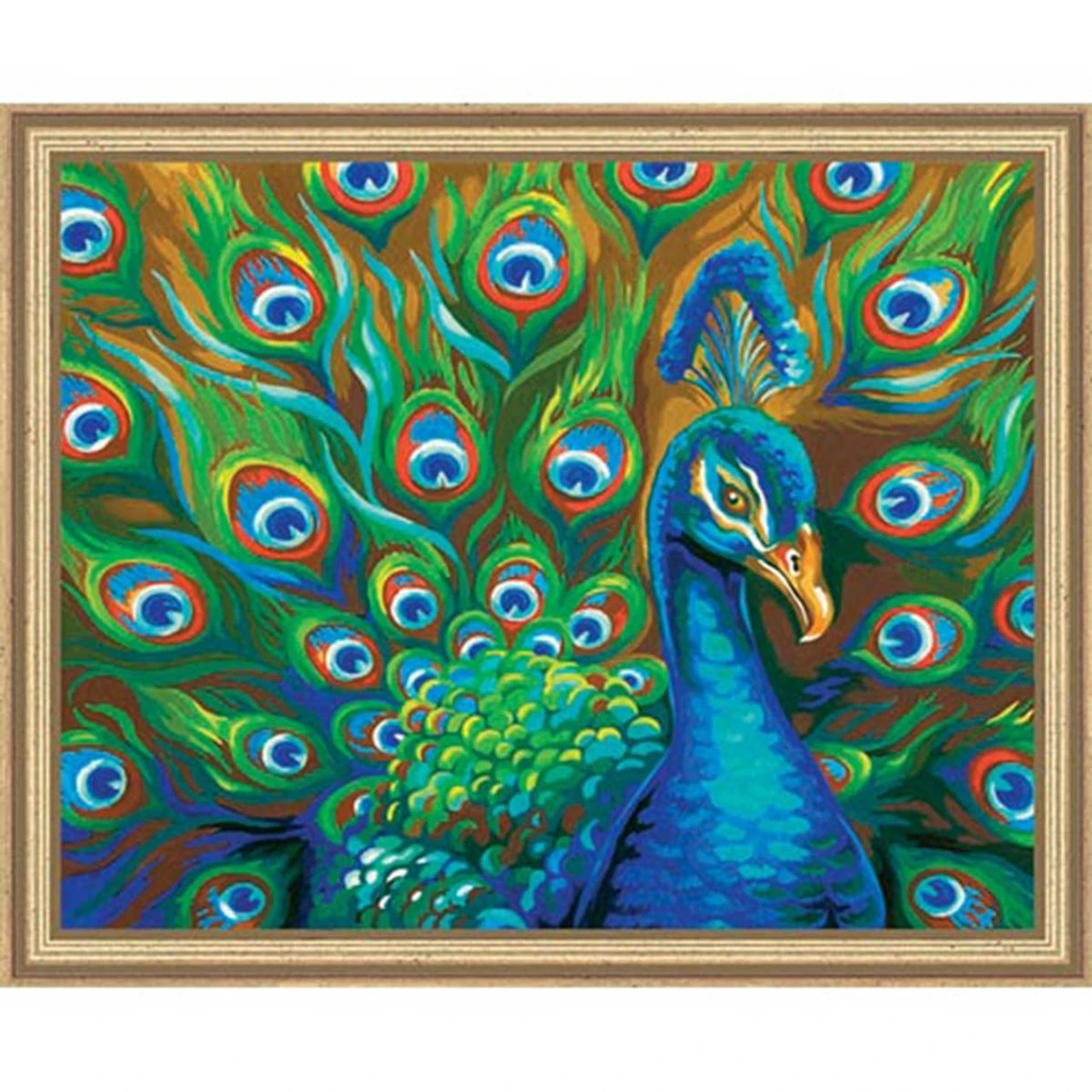 A masterpiece of color and detail, this gorgeous paint-by-number peacock portrait deserves pride of place displayed in your home. Paint-by-number kit includes pre-printed textured art board, high quality acrylic paints, artist paintbrush, and easy instructions. Frame sold separately, brings out the beauty of your artwork. 14 x 11″ (36 x 28cm).