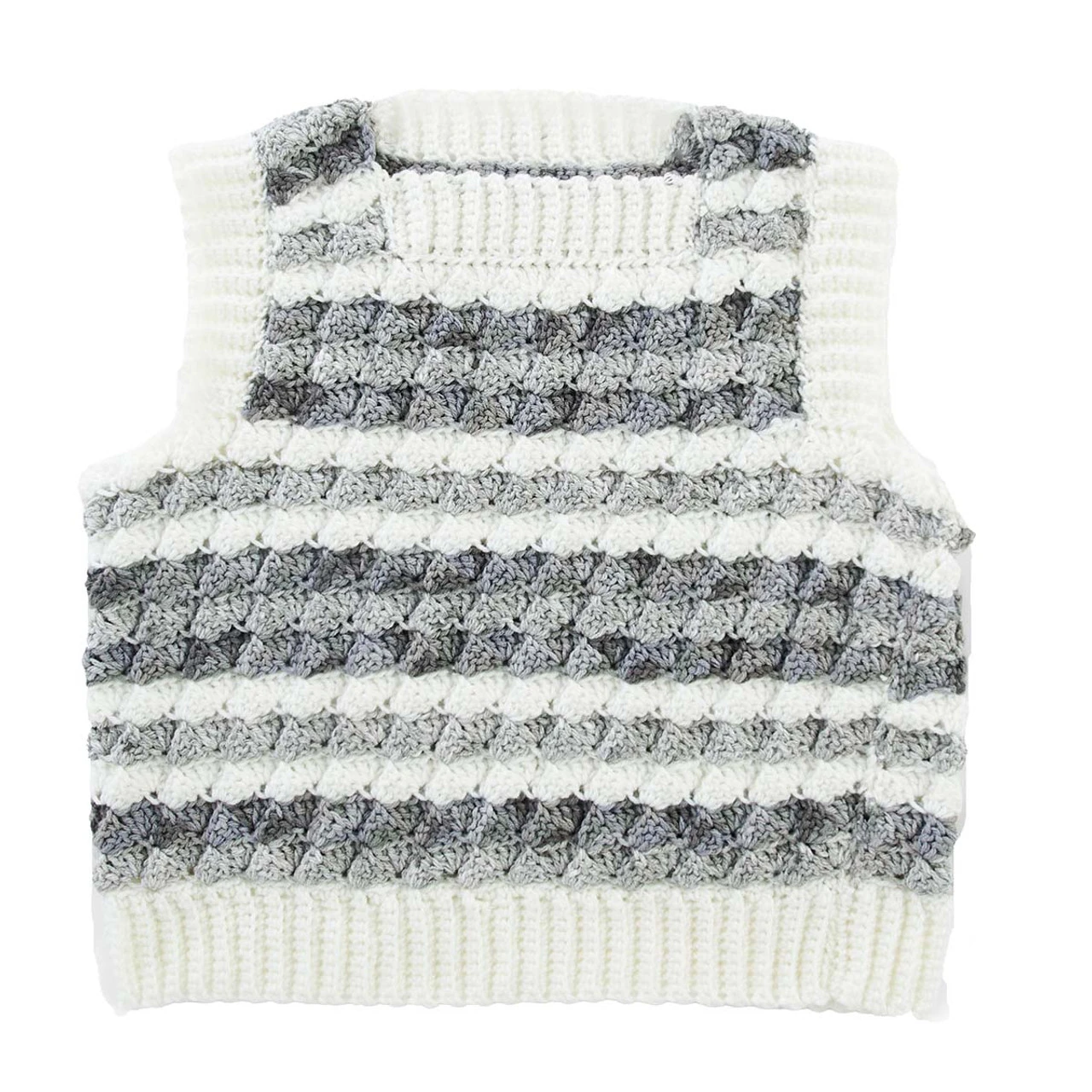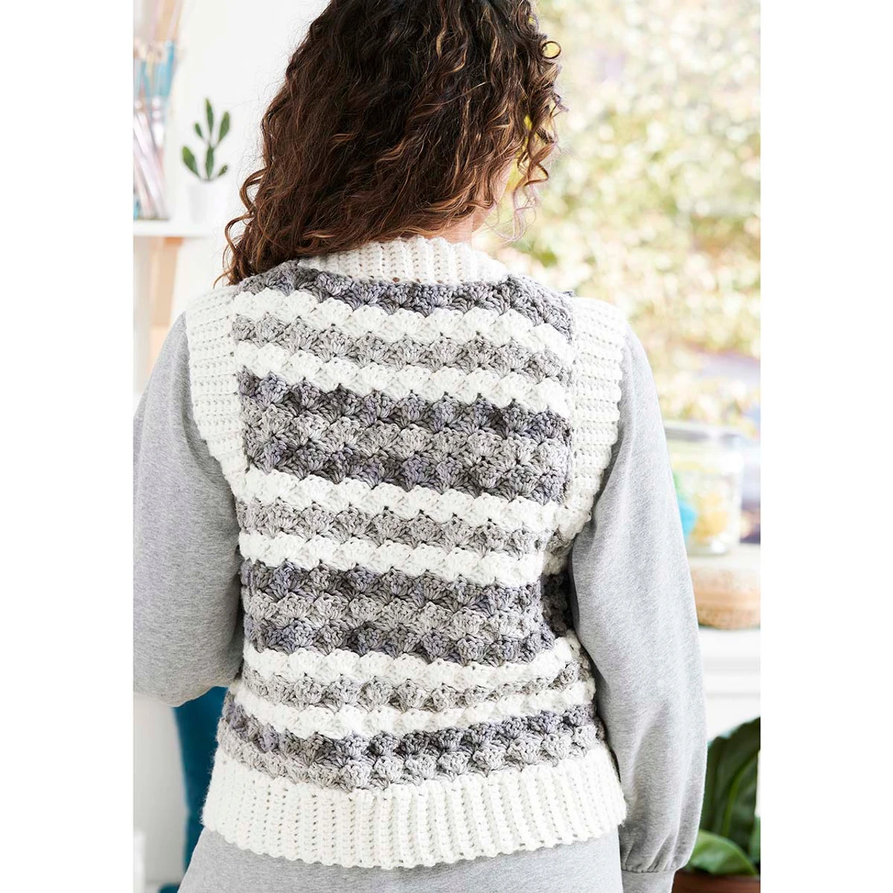 This textured vest adds an extra layer of warmth to your outfit. Stitched in neutral shades of Red Heart Super Saver yarn, this vest pairs well with a blouse or long-sleeved tee. It’s a great introduction to crocheting garments! This vest kit includes the yarn and easy crochet instructions. Available in sizes Extra Small through 5X, this design requires US size H-8 (5mm) and I-9 (5.5mm) hooks to complete (not included). Imported.