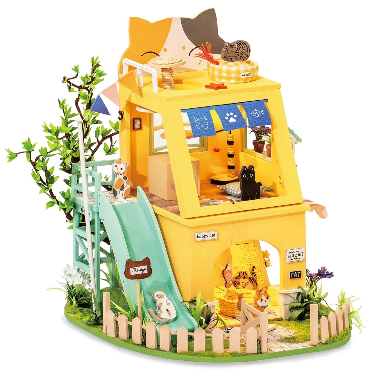 This fanciful home for felines is filled with details to delight cat lovers. This adorable model includes many miniatures and LED light! Build pre-assembled items made from wood, fabric, thread, wire, and paper cutouts. Includes necessary assembly tools, glues, brush, tweezers, and instructions. Requires two lithium cell batteries, not included. For ages 14+. 5 x 7 x 6¼” (12.7 x 17.8 x 15.9cm).