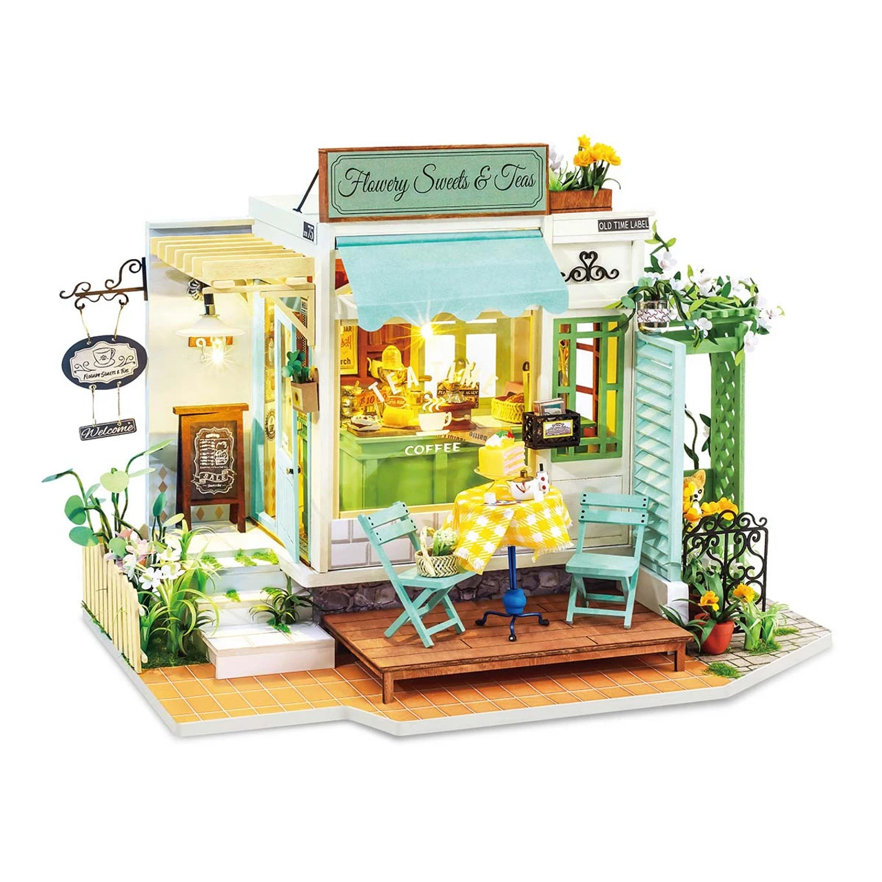 Enjoy an afternoon at your favorite tea shop as you fill your hobby time with this miniature model! Craft this adorable and detailed model that includes many miniatures and LED light! Build pre-assembled items made from wood, fabric, thread, wire, and paper cutouts. Includes necessary assembly tools, glues, brush, tweezers, and instructions. Requires two lithium cell batteries, not included. For ages 14+. 8½ x 5¾” (21.6 x 14.6cm).