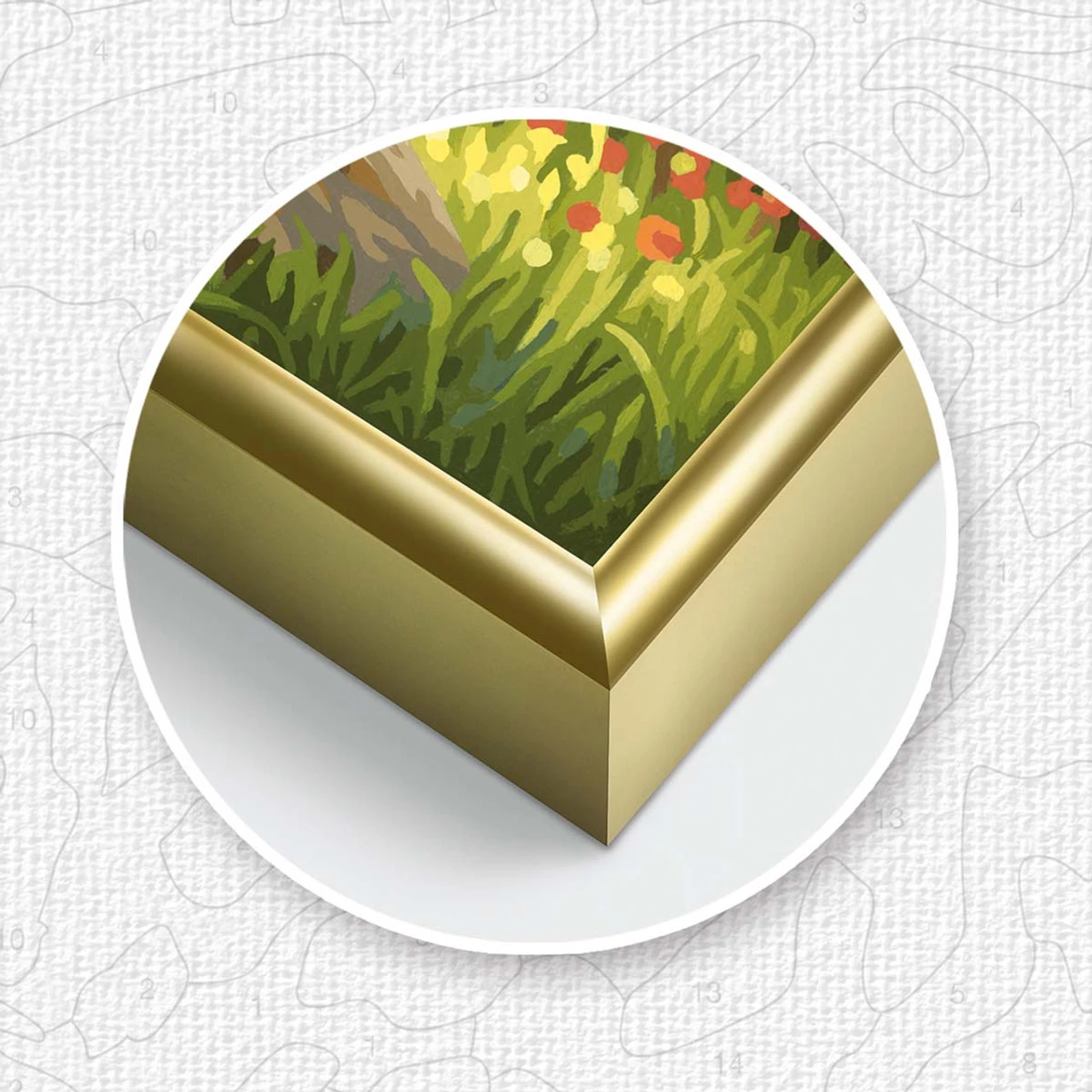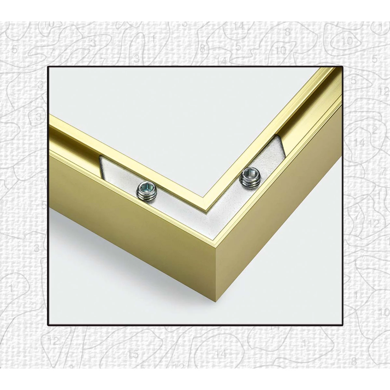 Create a coordinated gallery wall or a triptych-style art display with this set of three gold-colored aluminum frames. These 15¾ x 15¾” (40 x 40cm) square frames are perfect for framing needlework, paint-by-numbers, or other artwork. This easy-to-assemble sectional frame set includes gold-colored picture moldings, corner connectors, springs, hooks, screws, and easy-to-follow instructions to create three frames. Each adonized aluminum frame has a golden shimmer that highlights your artwork and a narrow outline that makes sure your artwork is the star of the show.