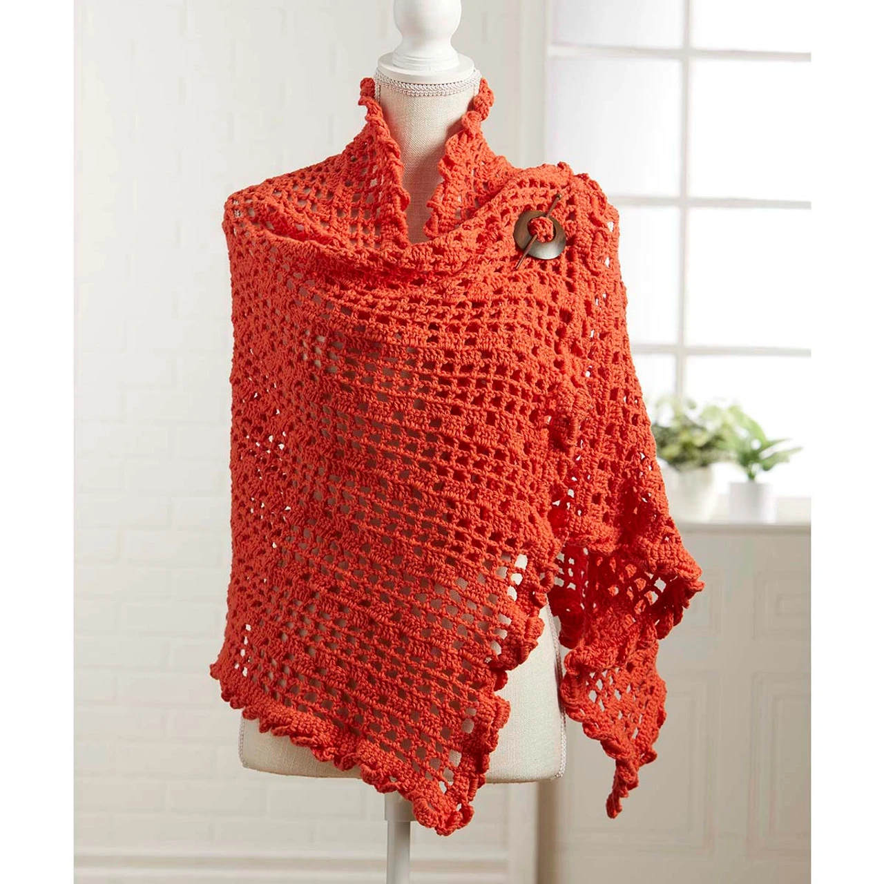 This flirty lace shawl in an eye-catching shade of paprika is perfect for bright summer days. Kit includes Soho Cotton Chic yarn and easy crochet instructions. 24 x 48″ (61 x 122cm). Imported.