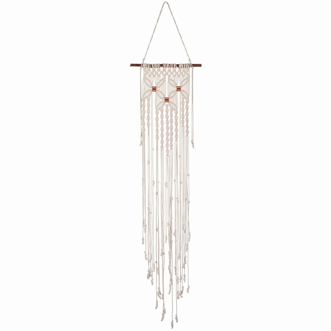 • This macrame wall hanging kit includes cotton cord, natural wood hanging branch, copper finish tubes, and complete instructions.