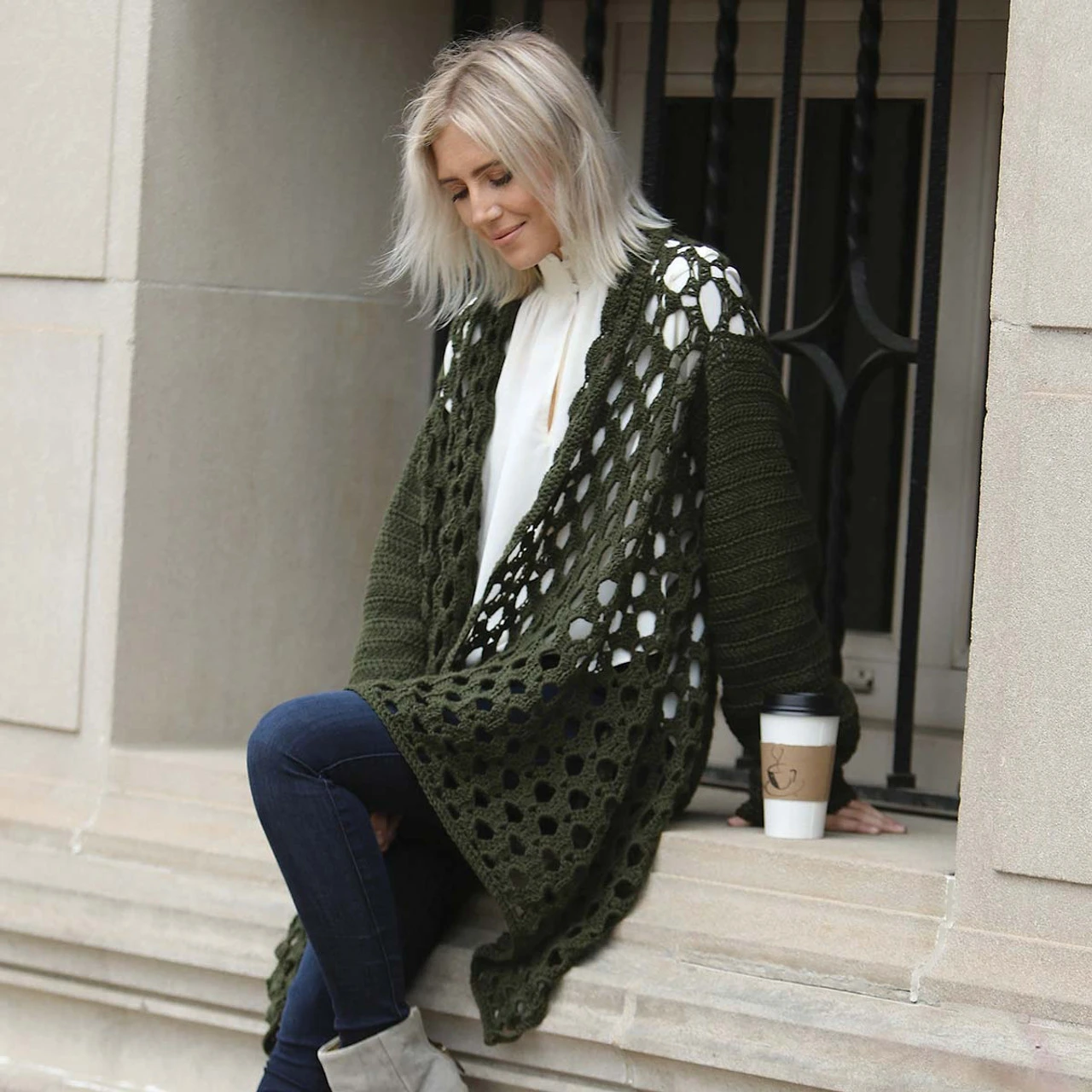 This airy oversized sleeve cardigan is perfect for days in with friends. Kit includes Willow Everest yarn and intermediate crochet instructions. Imported.