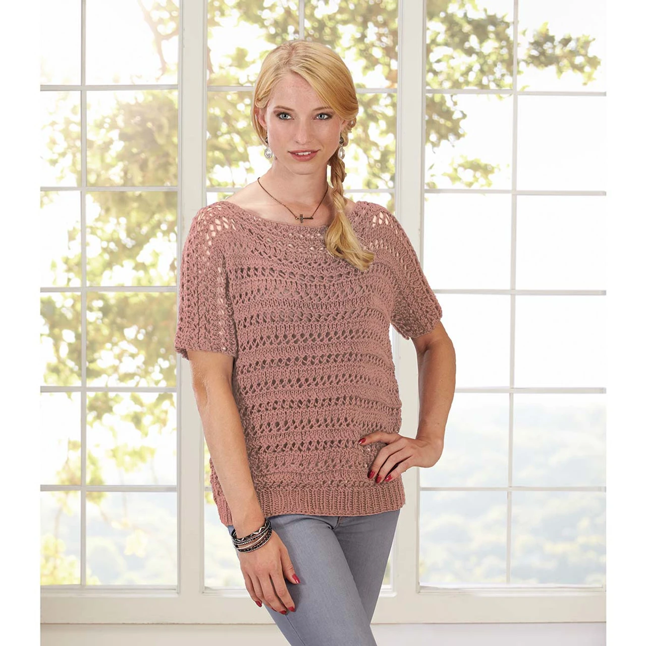 A flattering tunic, designed by Lorna Miser with Willow Daily Worsted yarn, is a great option to toss over a tank and jeans for effortless style. Kit includes yarn and easy knit instructions. Imported.